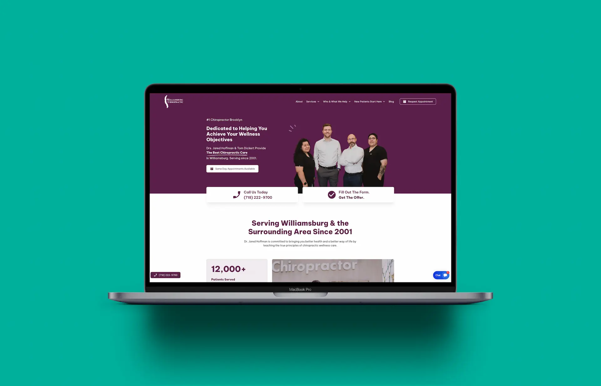 The Williamsburg Chiropractic team contacted The Advert Pros to create a digital marketing plan for their practice. A website redesign showcasing their staff and services was just the beginning.